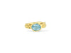 Oval Aquamarine, in a molten band, set slightly off centre, allowing one side to be stacked with another ring.