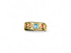 Round blue/teal central sapphire, and 4 x sunset sapphires, set in a 1/2 cigar band