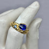 1.6ct Oval Kyanite , in a molten band, set slightly off centre, allowing one side to be stacked with another ring. With a small blue sapphire.